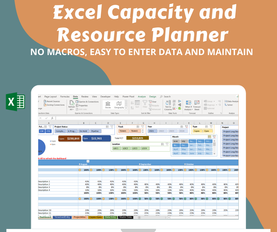 Plan your resource capacity for your teams with different rates, locations, Capex/Opex etc.